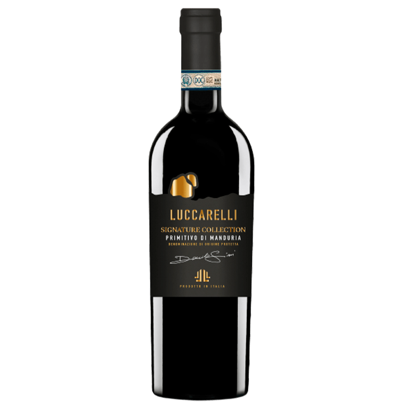Primitivo de Manduria intenso e estruturado. Colheita de vinhas antigas, estágio em barricas de carvalho francês e americano (~12 meses). Aromas de cereja e amora, com notas de tabaco, menta e toques de cacau/café; taninos macios e final persistente.